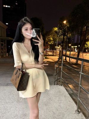 Slimming French-style V-neck dress for plus-size women, exuding elegance and charm, with a high-waisted design to accentuate the waist and create a flattering silhouette.