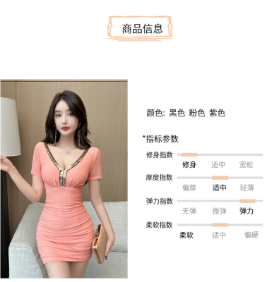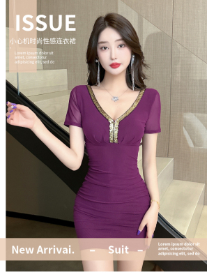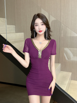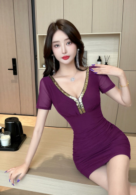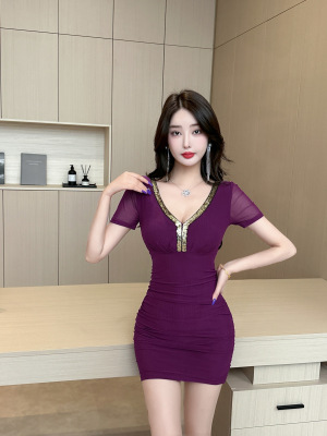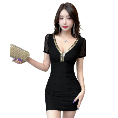 Lusty Pure Desire Sexy U-Neck Bodycon Skirt Stylish Slimming Sheer Net Short-Sleeve Dress