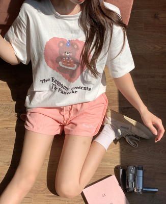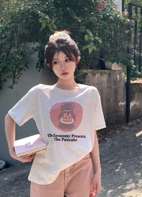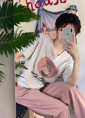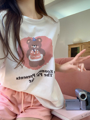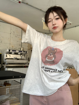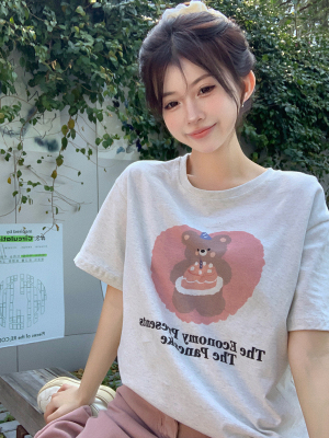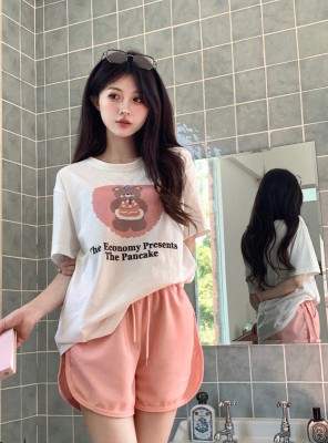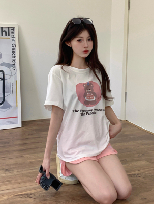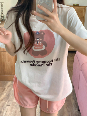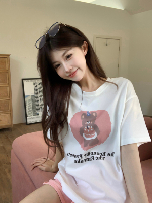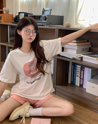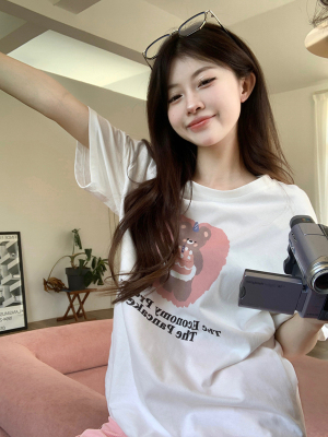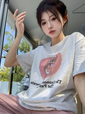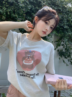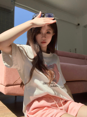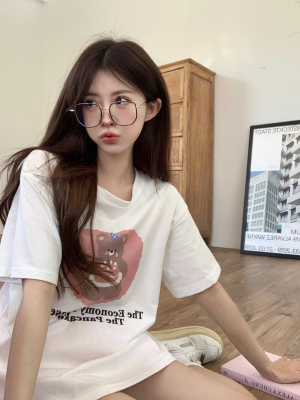 純棉 原版夏季韓版新款原宿風印花寬鬆短袖T恤上衣女裝