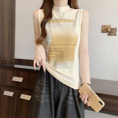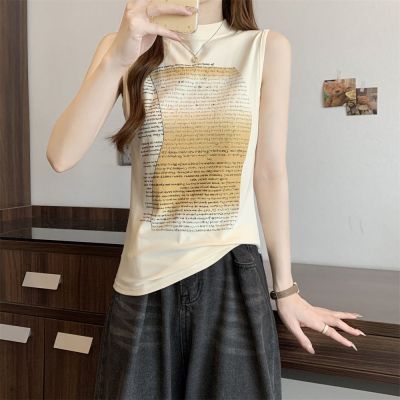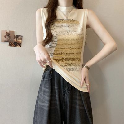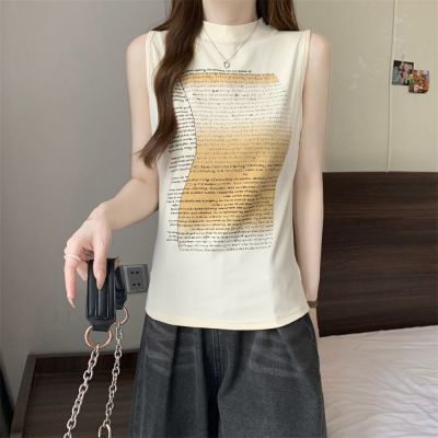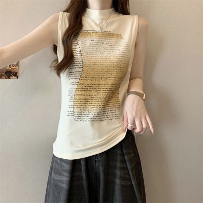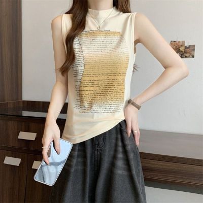 實拍 40支純棉210克92棉/8氨綸無袖T恤女上衣印花
