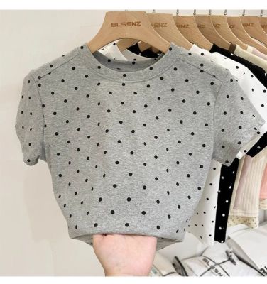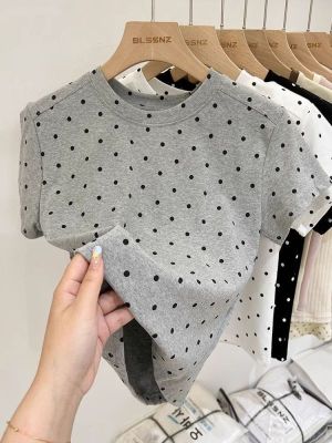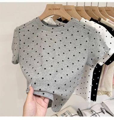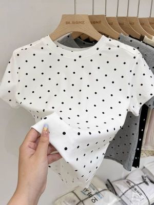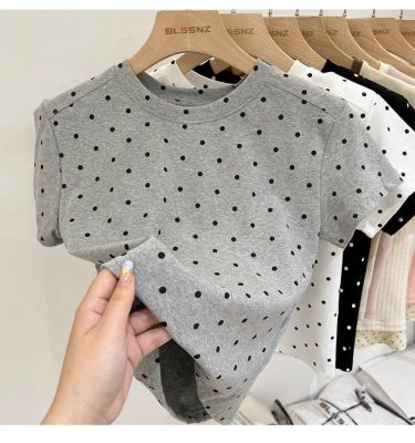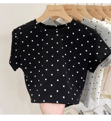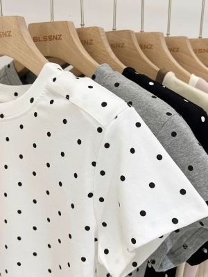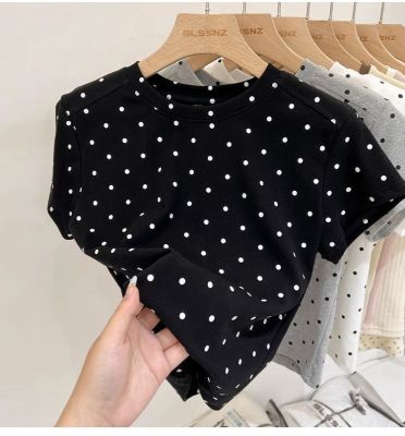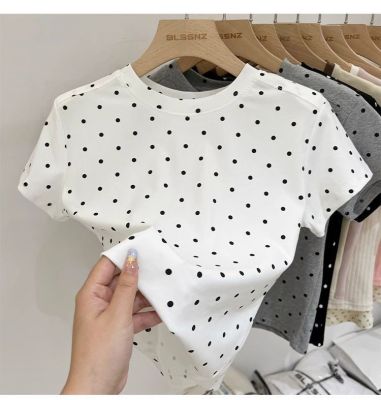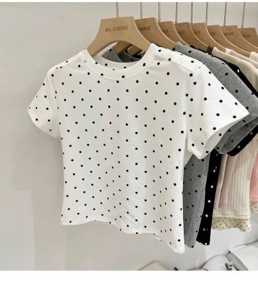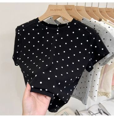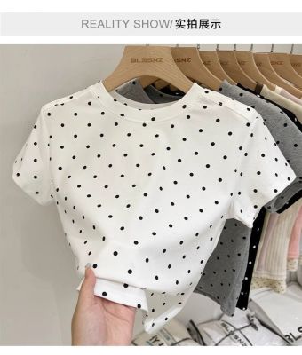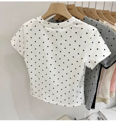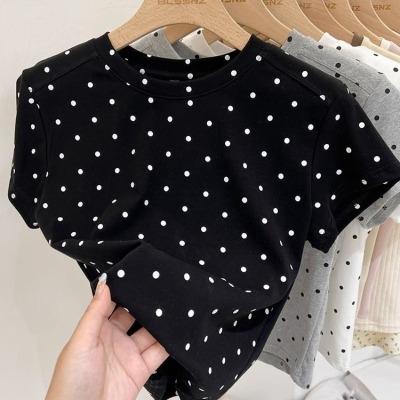 92棉8氨綸後包領210克螺紋 修身波點短款上衣t恤女