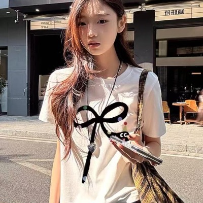 夏日休閒短袖t恤女寬鬆小清新設計感百搭上衣