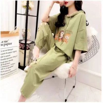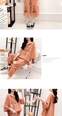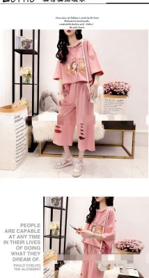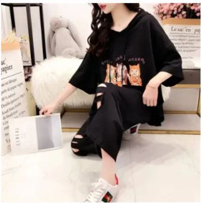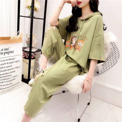 Ladies' Summer Top and Bottom Set with Fresh Style, Trendy, Loose Fit, and Hole Design