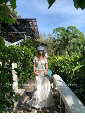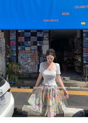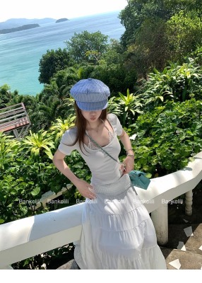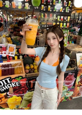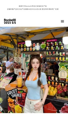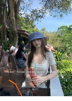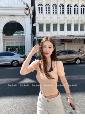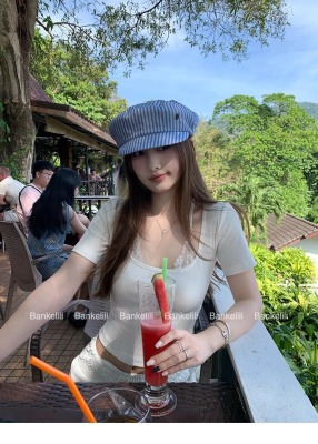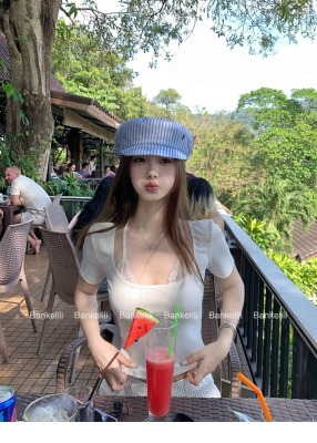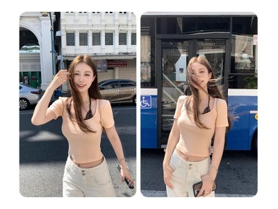 American fake two-piece contrasting lace halter neck short-sleeved T-shirt for women in summer temperament versatile short top