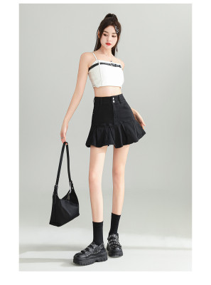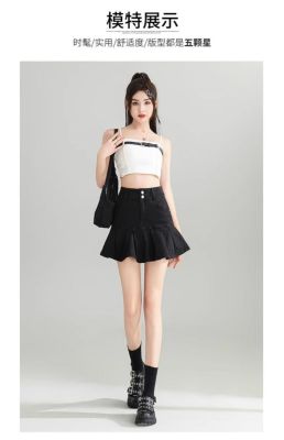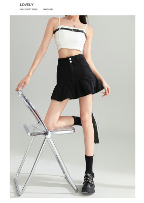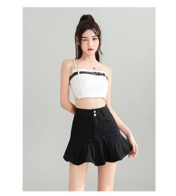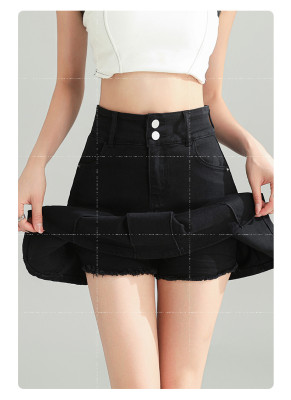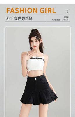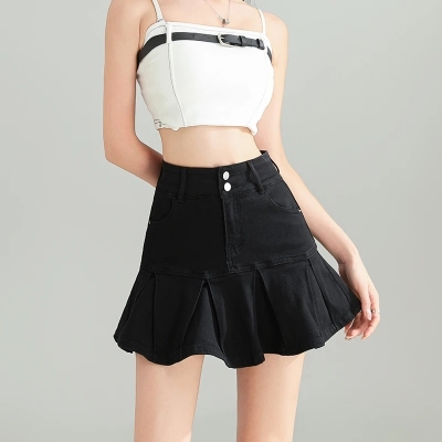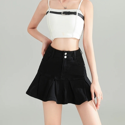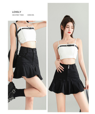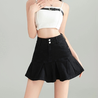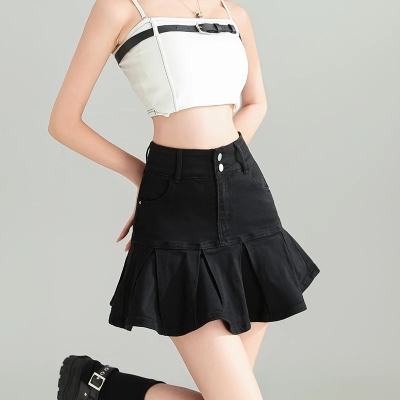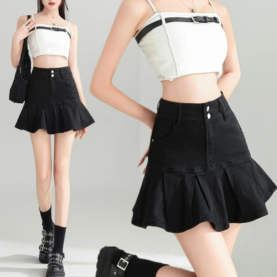 Pleated skirt denim short skirt for women in spring and summer 2025 new high-waisted slim hot girl with a versatile pure and sexy skirt