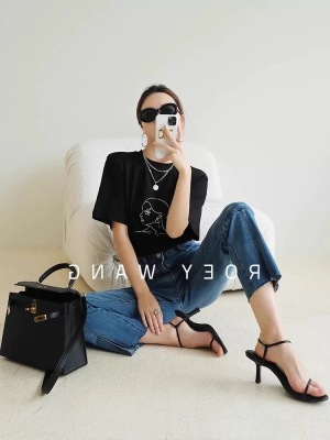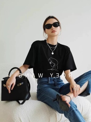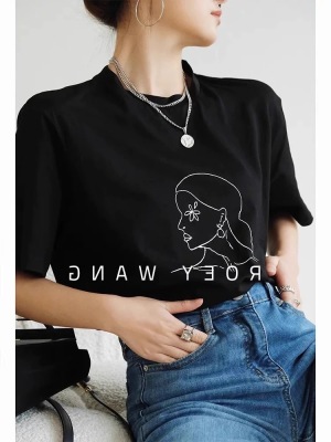 200g combed and tight spun in 2025, pure cotton back bag strip, spring and summer loose shoulder printed short-sleeved T-shirt