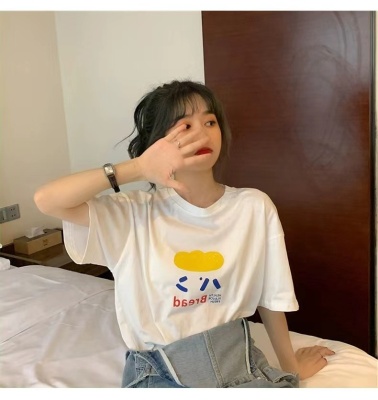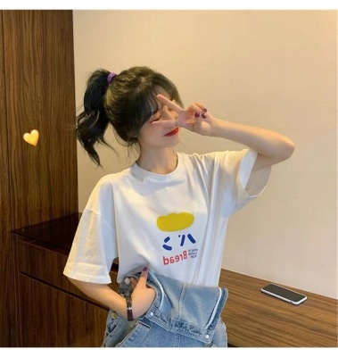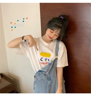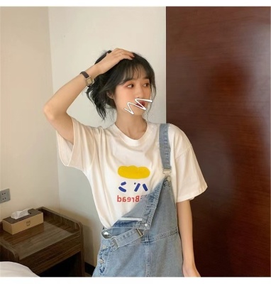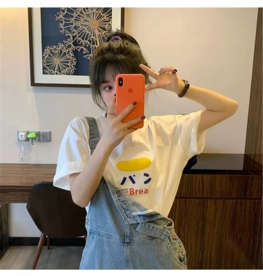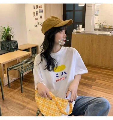 200g combed and tight spun in 2025, pure cotton back bag strip, spring and summer loose shoulder printed short-sleeved T-shirt