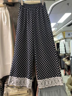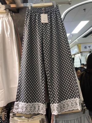 Korean version 2025 new spring lace floral splicing casual pants for women