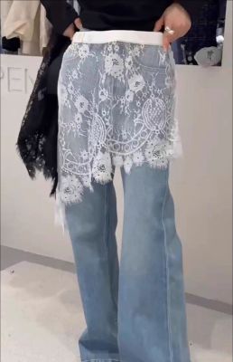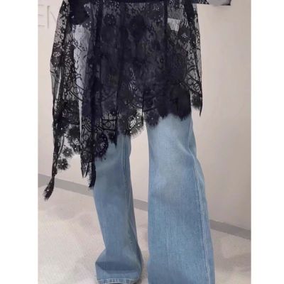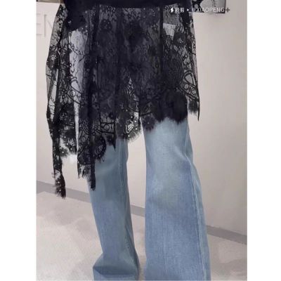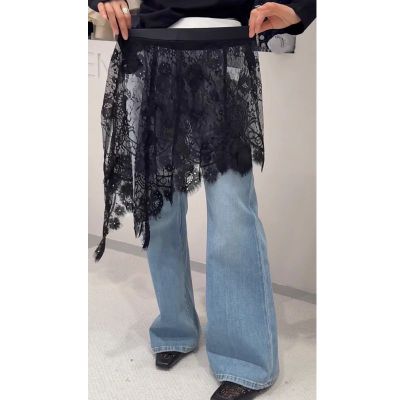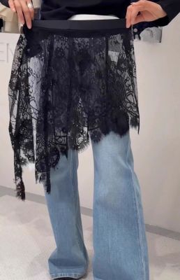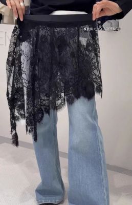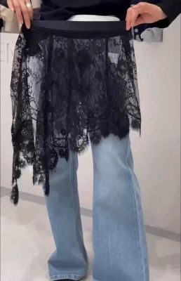 2025 Spring and Summer New French Age-reducing Lace Butt Curtain Versatile Layer Side Slit Hollow Skirt for Women