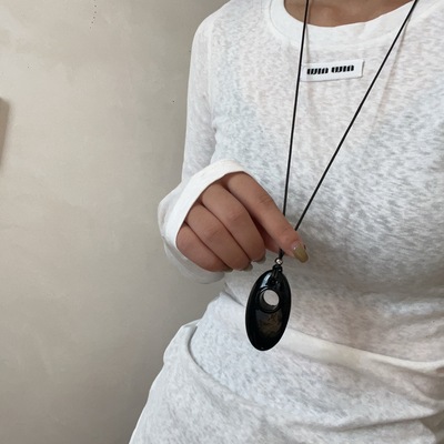 黑色金屬橢圓黑繩項鍊
