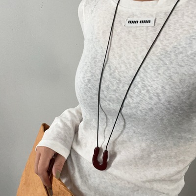 酒紅色U形金屬雙面黑繩項鍊