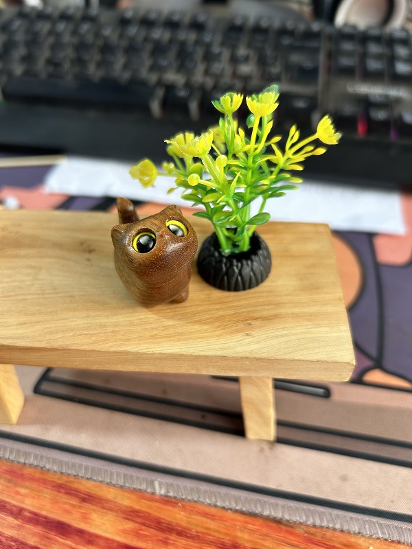 綠檀木雕好奇小貓動物創意木質可愛貓咪文玩手把件生日小禮物禮品