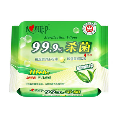 Heart to Heart杀菌独立湿巾, 10 sheets per pack. Box size: 96 packs per box. Item number: XCA001
