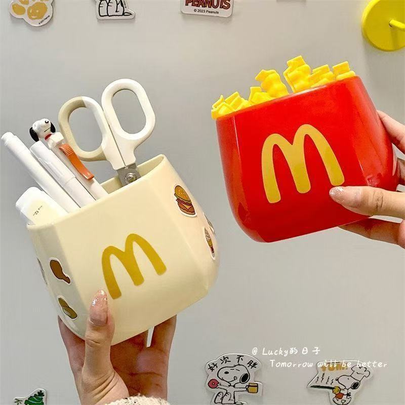 McDonald's magnetic absorption box refrigerator magnet pen holder cute fries magnetic collision refrigerator box creative pen holder