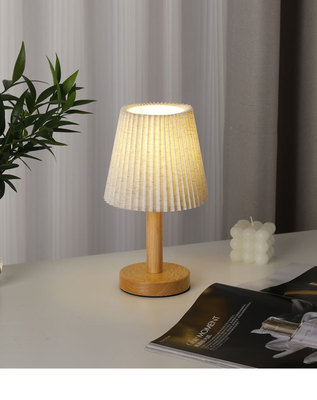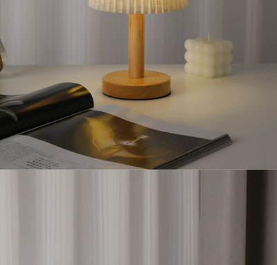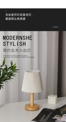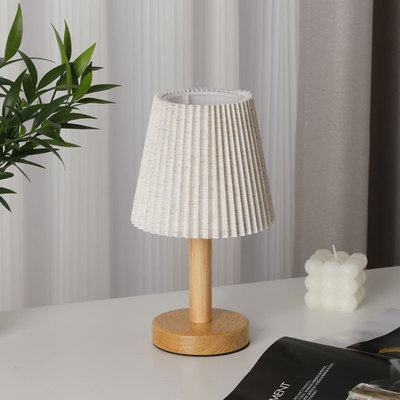 Linen shade wooden small night light, bedside decoration, ambient light, minimalist, light luxury, bedroom, living room, wooden night light