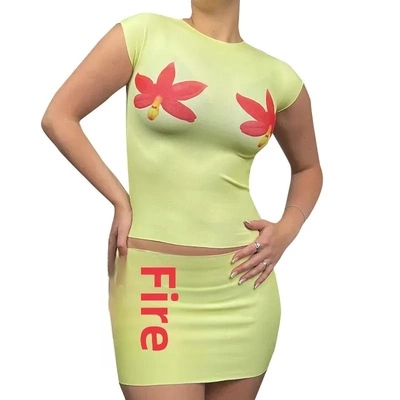 Q24ST082 European and American cross-border flower print design round neck short-sleeved skirt two-piece suit summer style