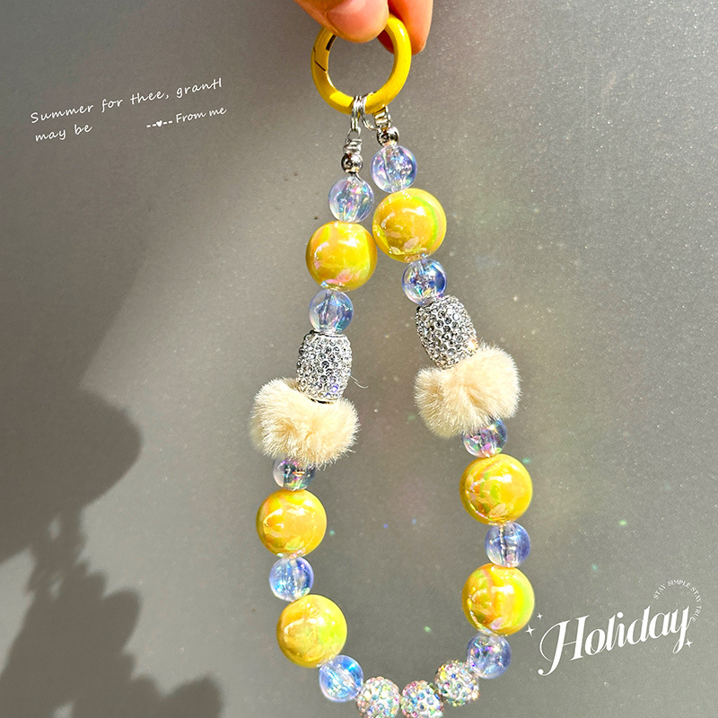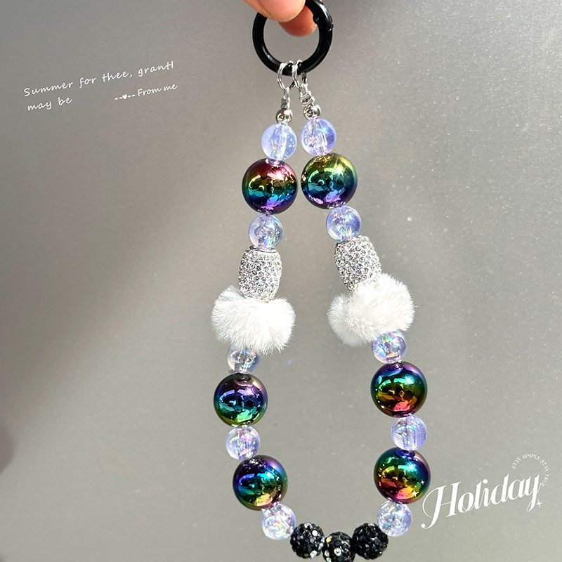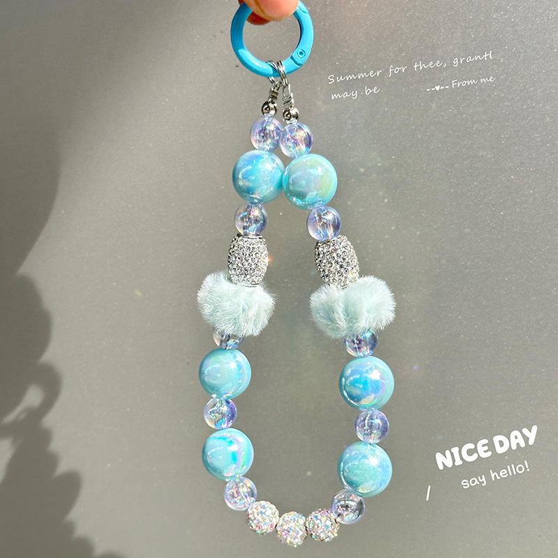 新款串珠毛球圈手機鏈創意鑽球汽車鑰匙扣掛件書包掛飾個性小禮品