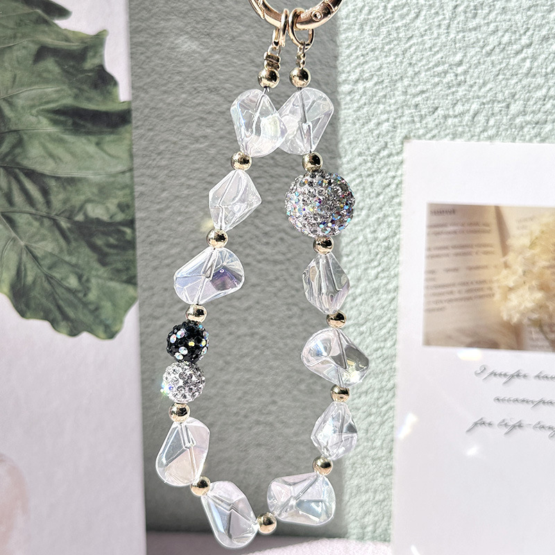 新款異形水晶手機鏈條汽車鑰匙扣耳機包掛飾直播同款串珠鏈批發