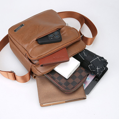 New PU Men's Multi-layer Storage Shoulder Bag, Solid Color, Versatile Casual Crossbody Bag, Cross-border Small Backpack, Custom Wholesale
