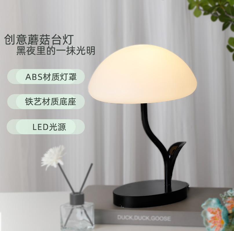 2024新款檯燈臥室床頭燈充電夜燈極簡中古蘑菇客廳燈高級感護眼氛