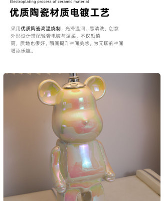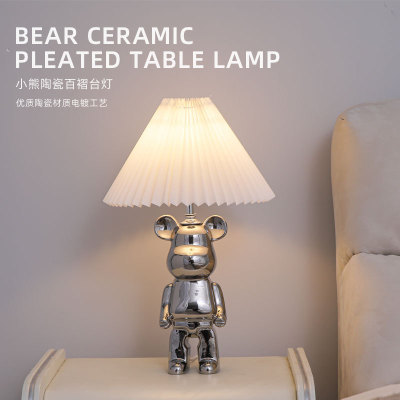 Creative Violent Bear Pleated Ceramic Table Lamp Decor Night Lamp Bedside Bedroom Children's Room Cartoon Table Lamp Living Room Table Lamp