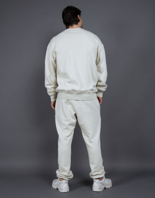 Cozy Thick Padded Crew Neck Sweatshirt Set for Autumn/Winter, Two-Piece Sweatshirt and Loose Straight Leg Pants for Couples, European and American Style