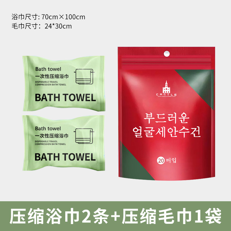 2 spring tea green bath towels_1 bag of compressed towels