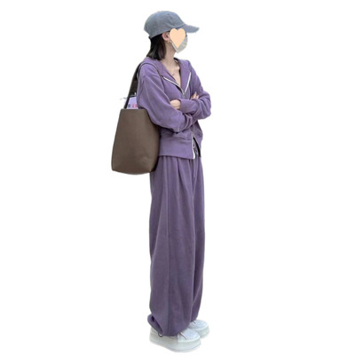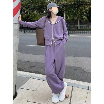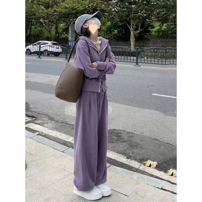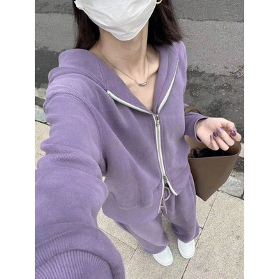 時尚套裝網紅女運動服春秋季新款韓版連帽拉鏈衛衣休閒長褲兩件套