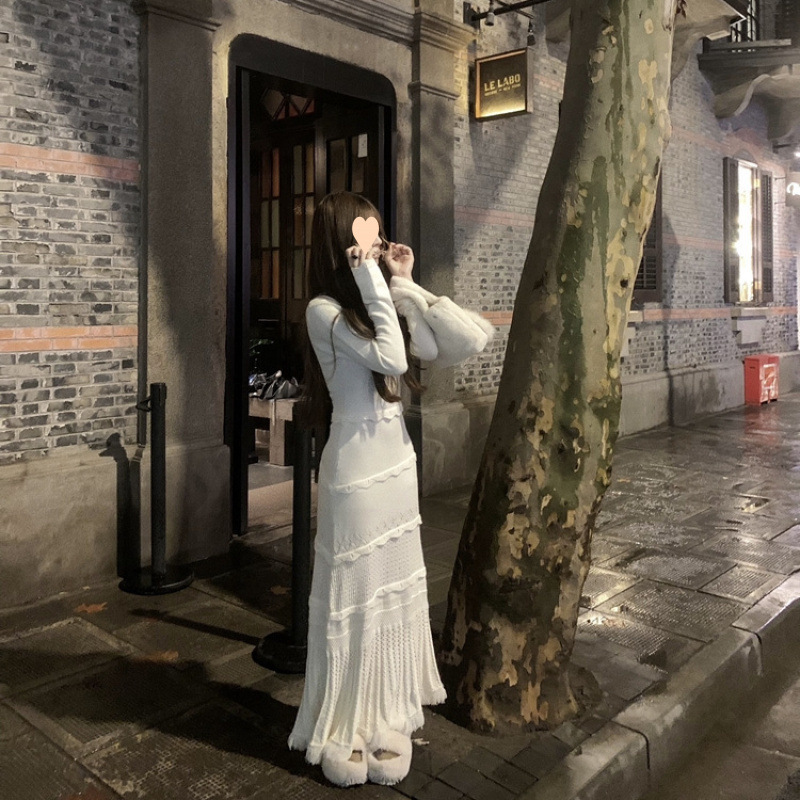 白色針織連衣裙