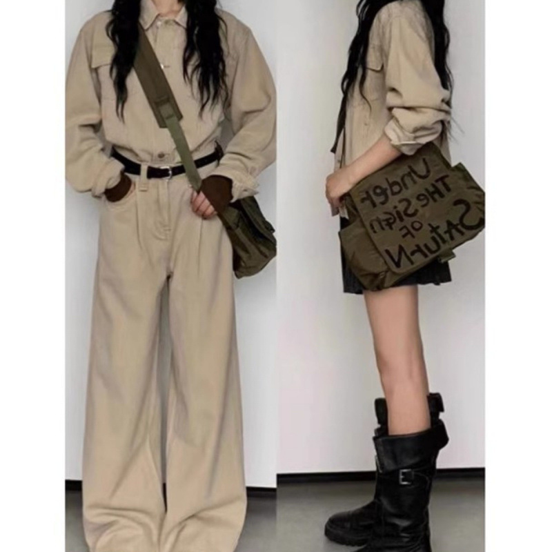 時尚休閒酷帥一整套美式復古2025牛仔外套夾克高腰兩件套兩件套裝