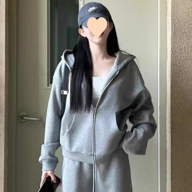 Casual sports suit for women's autumn and winter new hooded jacket loose student versatile wide-leg trousers long sleeve two-piece set