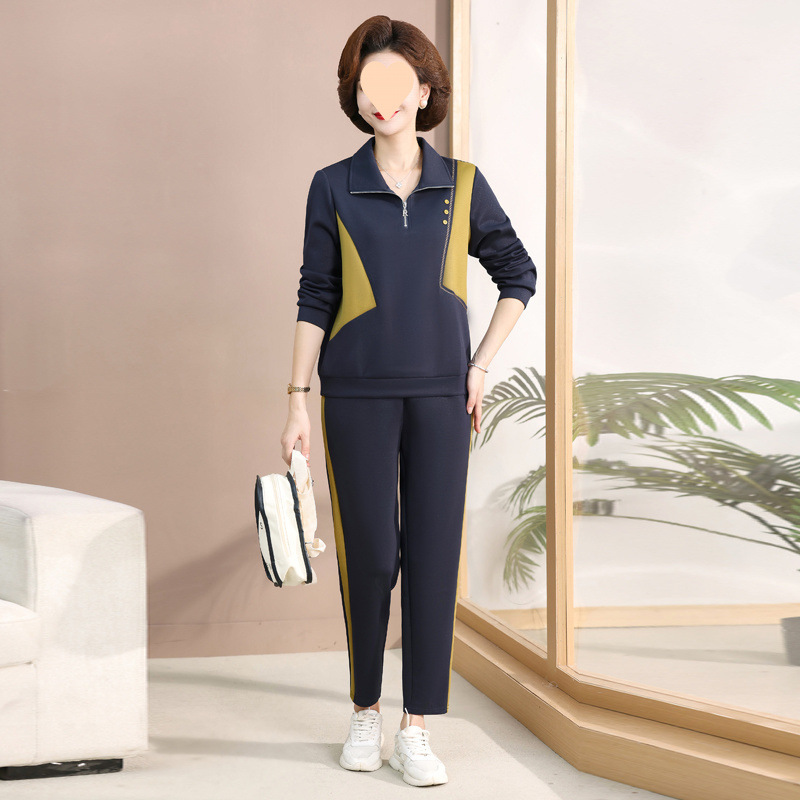 Spring and Autumn Fashion Middle-aged Mom Casual Suit Sweatshirt Female Middle-aged and Elderly Fashionable Age Reducing Sports Large Size Two-Piece Set