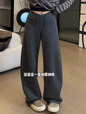 Fleece Thickened Personalized Scimitar Pants in Winter New Style Waist-lifting Banana Pants Slim Texture Straight-Line Casual Sleepy Sleeping Pants