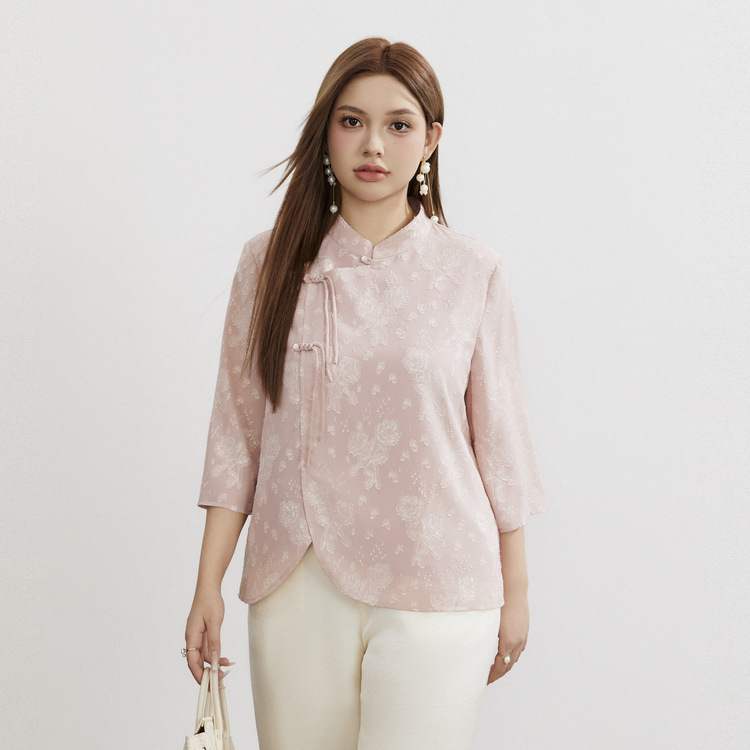 New Chinese style shirt, Fiber and Li show large size women's clothing, improved cheongsam temperament, slim top, fat mm summer clothing new style