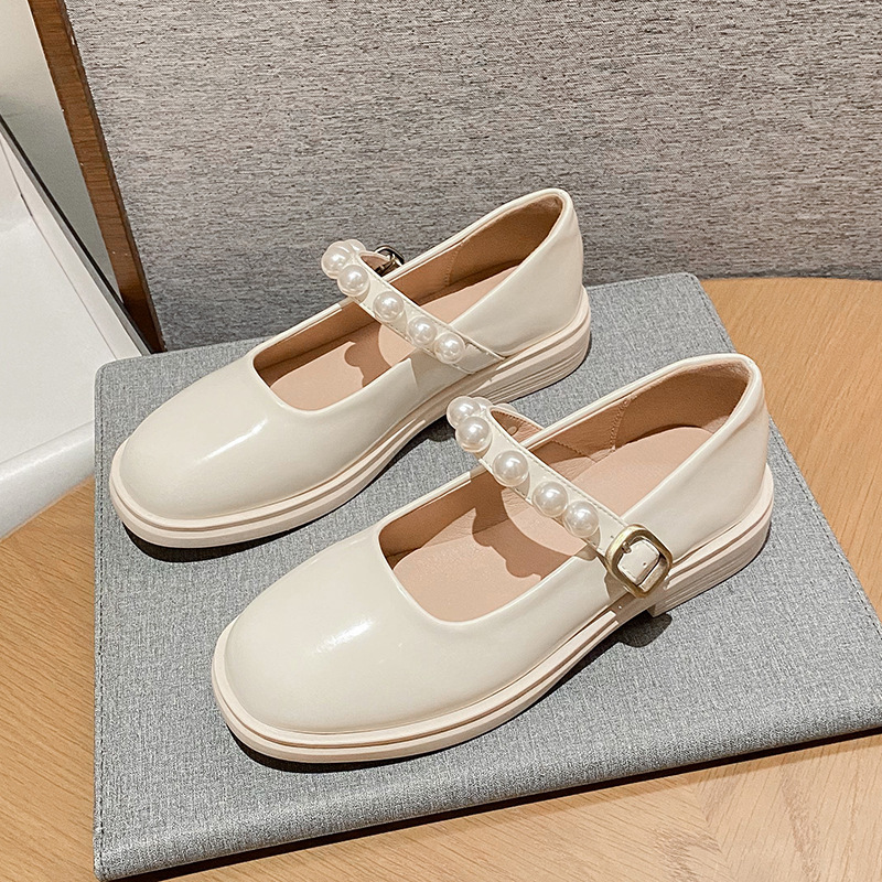 瑪麗珍單鞋女白色2024新款百搭珍珠淺口法式JK鞋學院風大碼小皮鞋