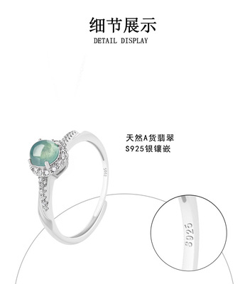 S925 Silver Pendant Ring with Natural A Grade Jadeite Blue Water Ice Crystal Stone Fashion Ring for Women Adjustable