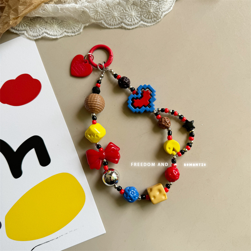 芭比手機鏈黑粉色甜辣妹y2k多巴胺手機配飾ins風串珠掛件鏈子飾品