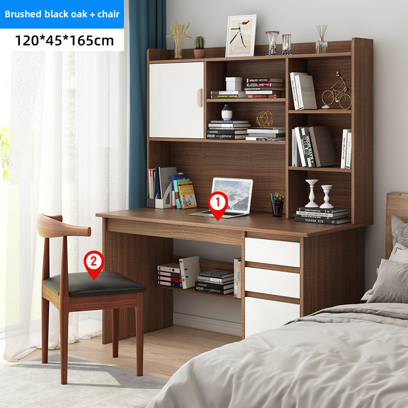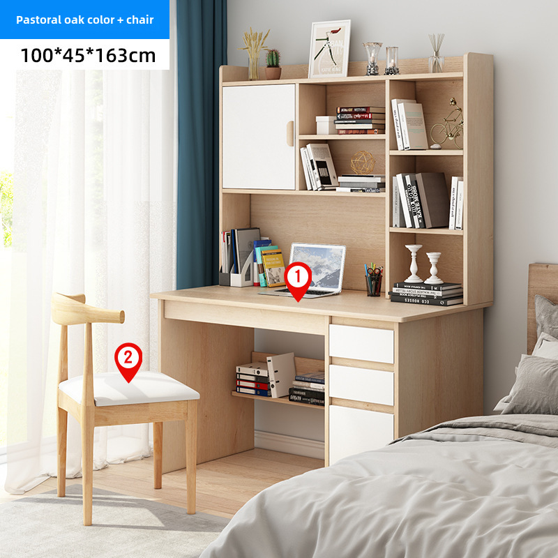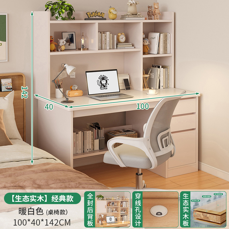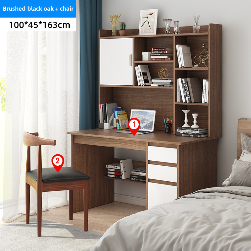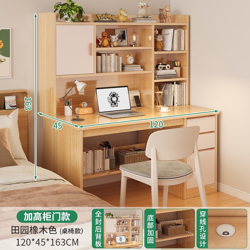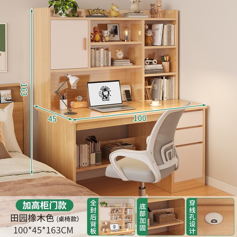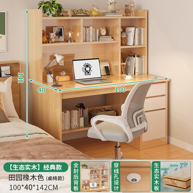 電腦桌台式家用學生書架書櫃一體寫字學習桌椅組合書房臥室辦公桌