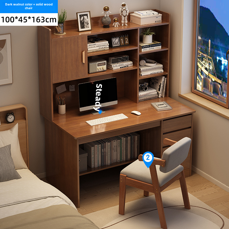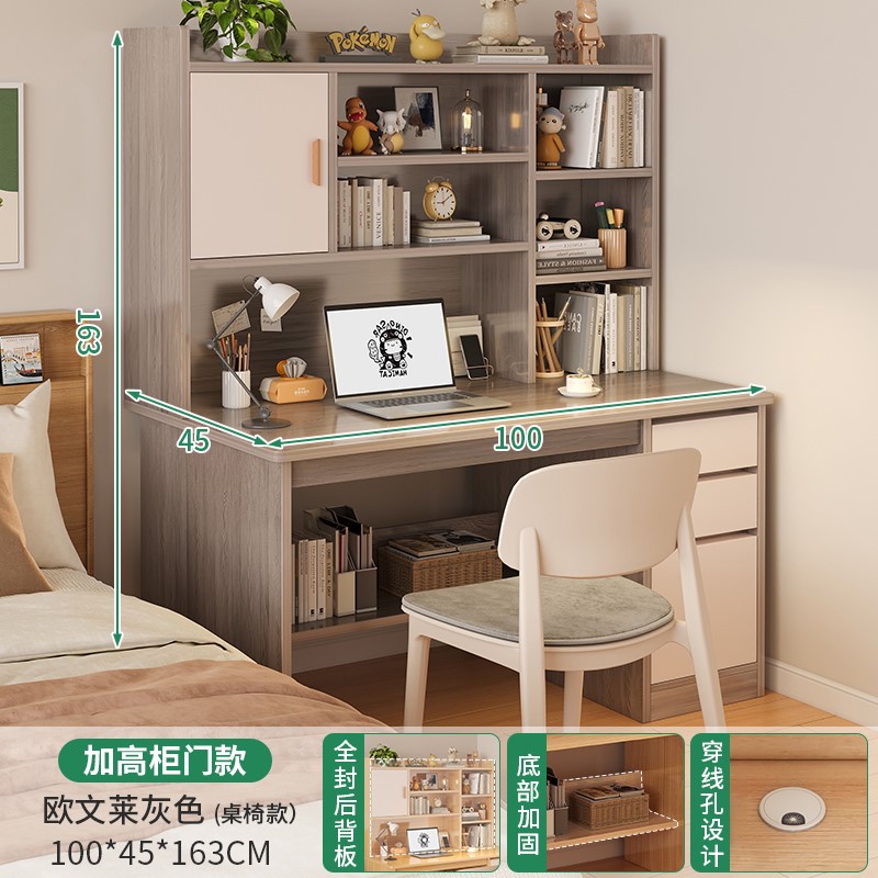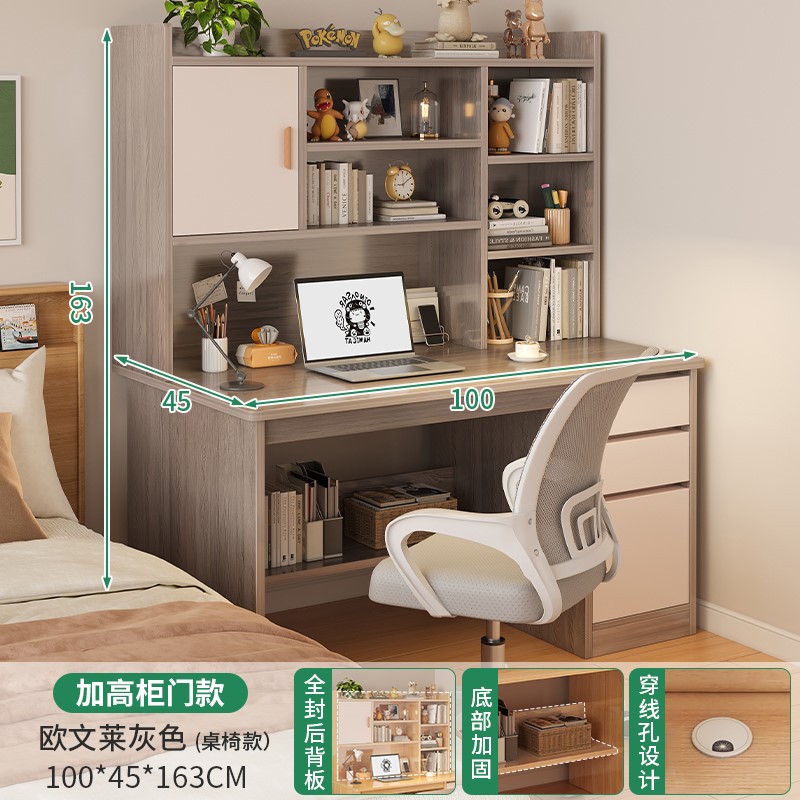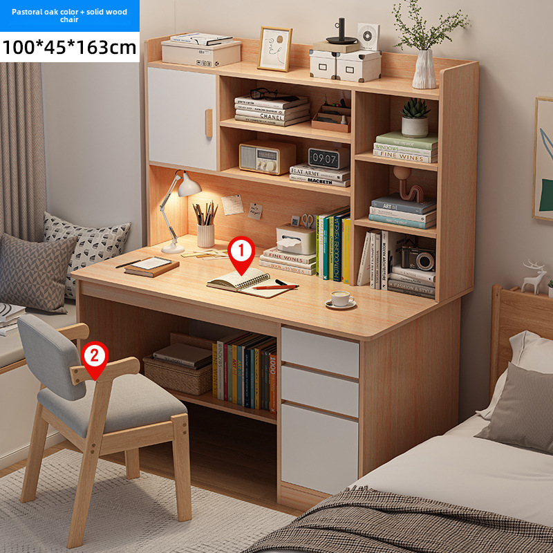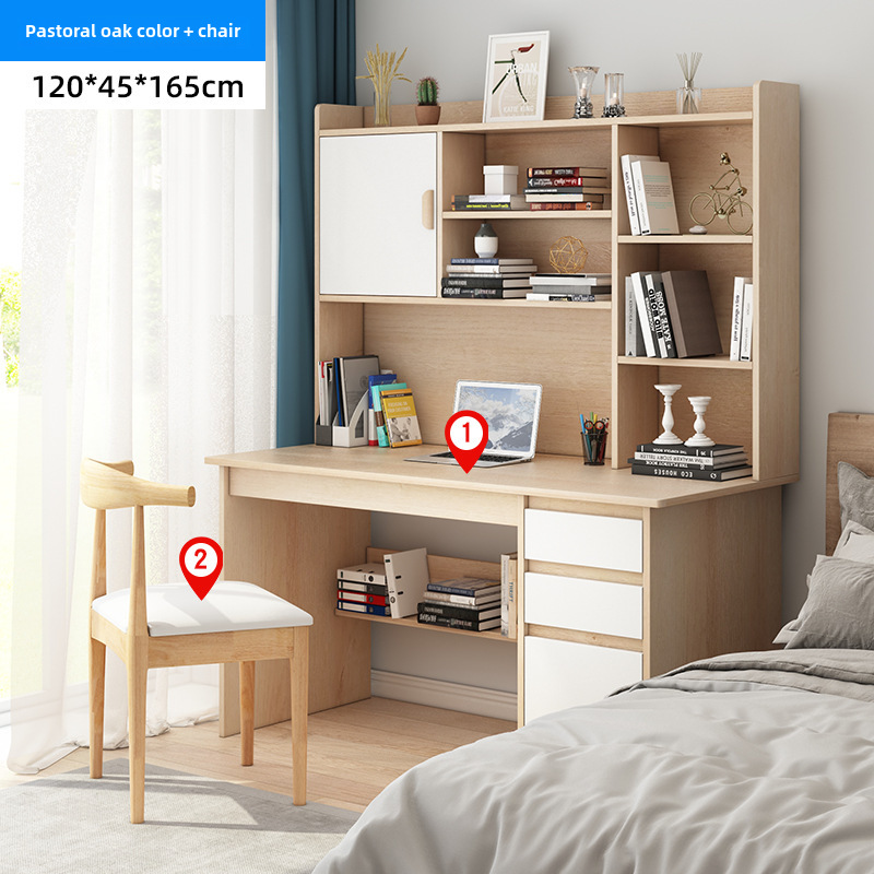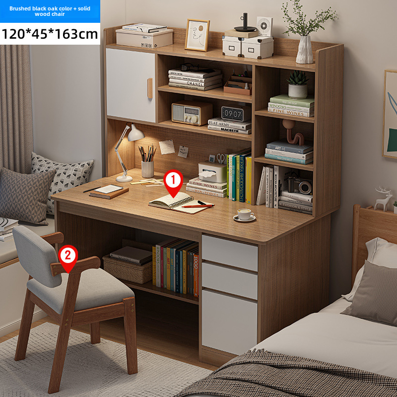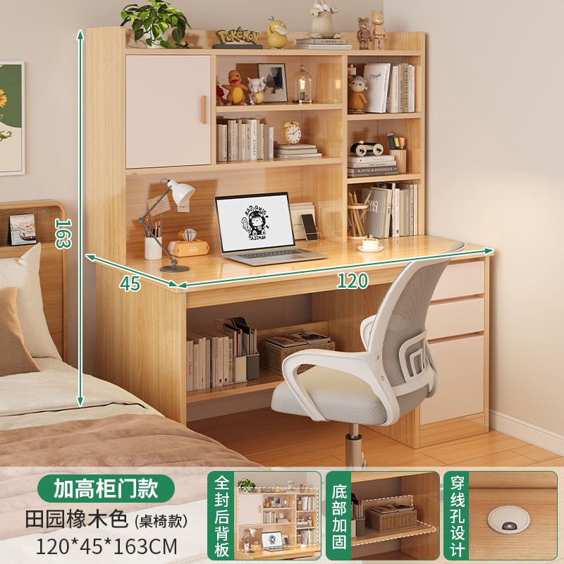 電腦桌台式家用學生書架書櫃一體寫字學習桌椅組合書房臥室辦公桌