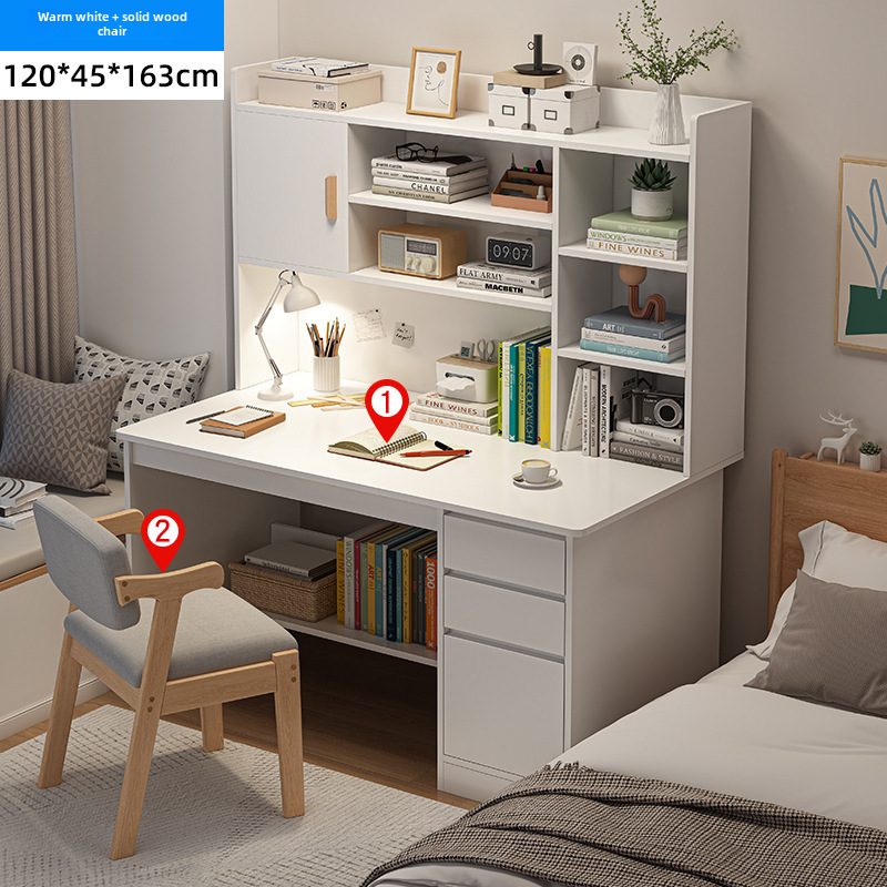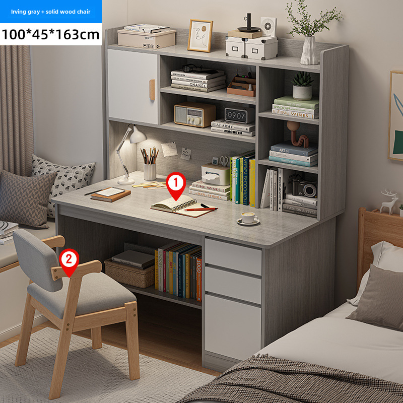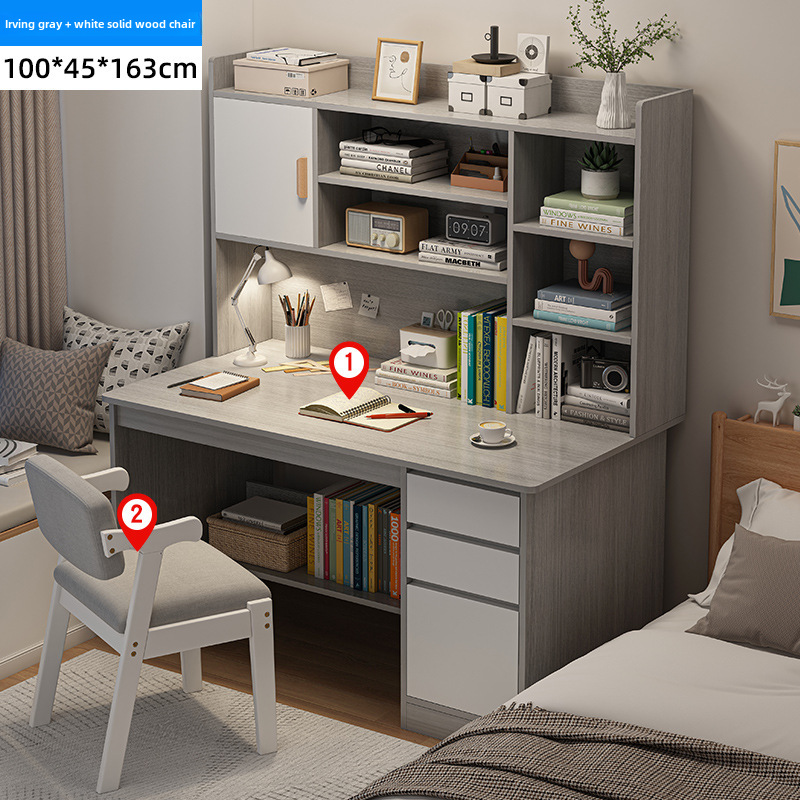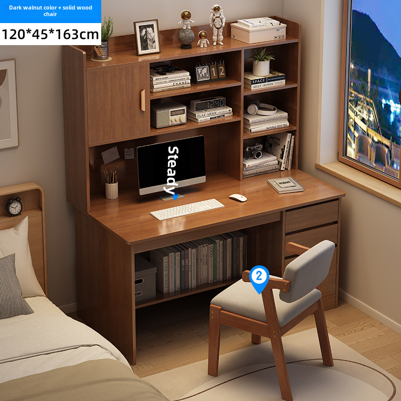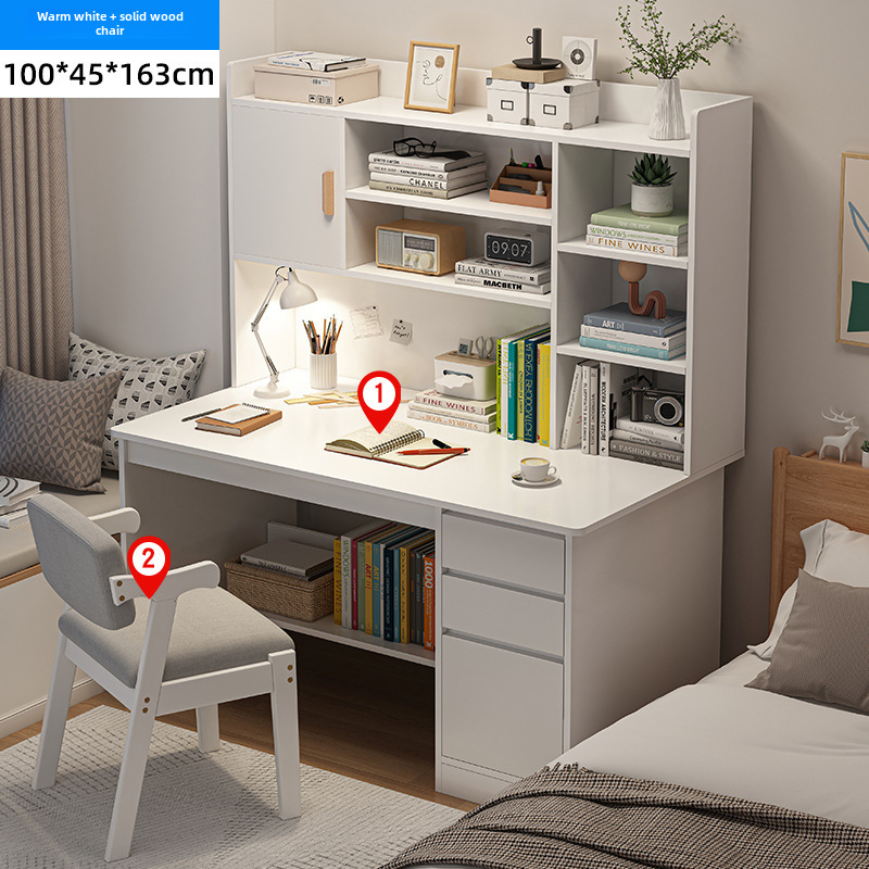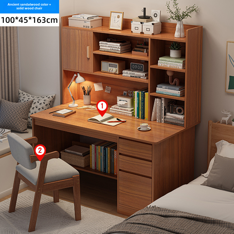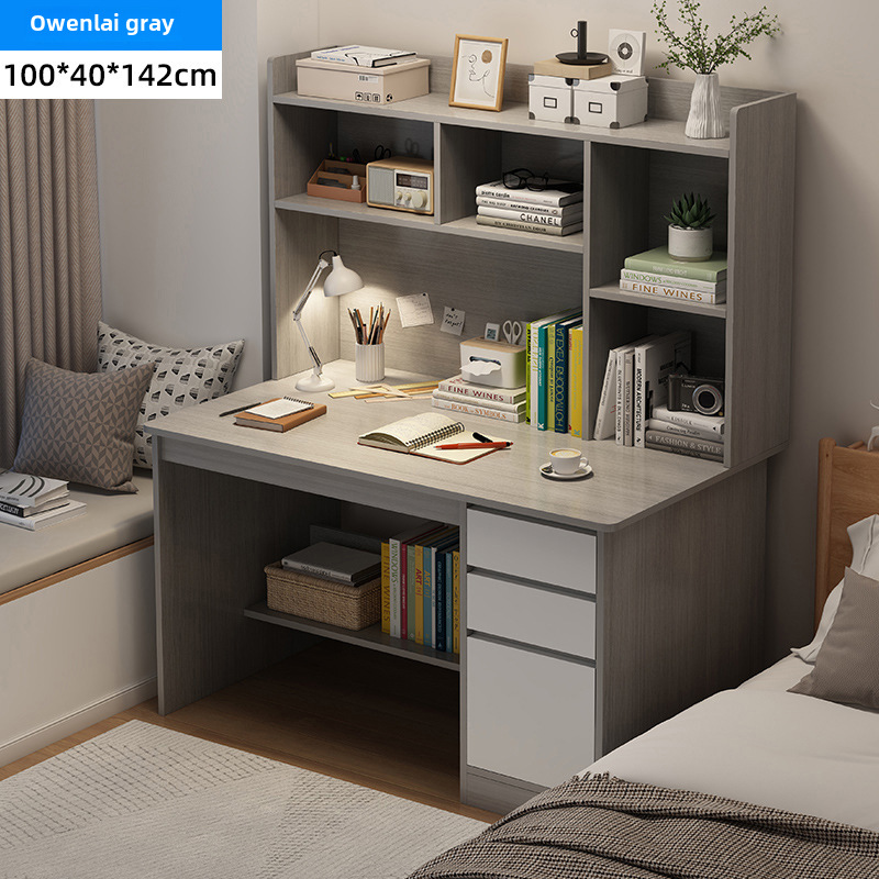 電腦桌台式家用學生書架書櫃一體寫字學習桌椅組合書房臥室辦公桌