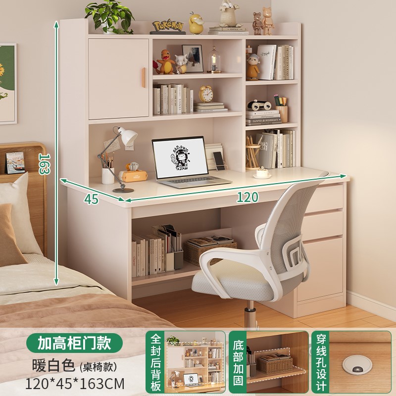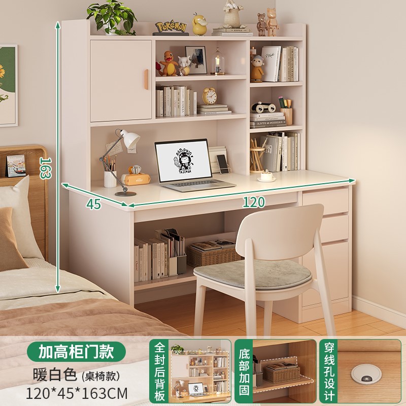 【組合裝】暖白色120CM+塑料靠背椅白色送坐墊