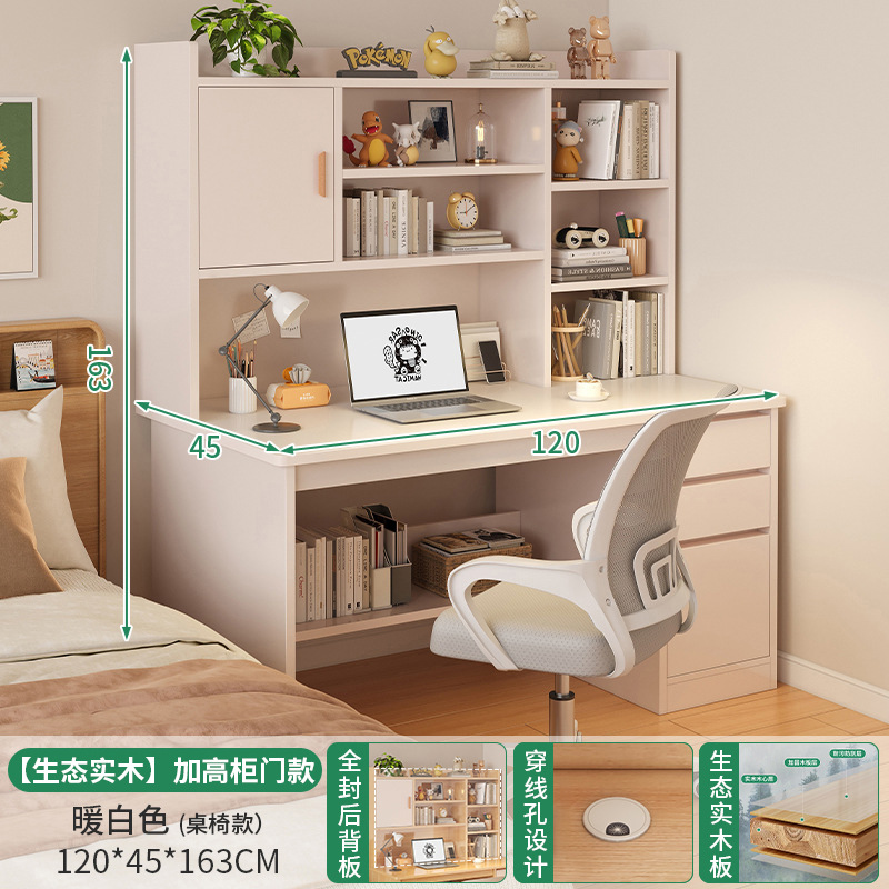 【組合裝】暖白色120CM+實木原色實木椅