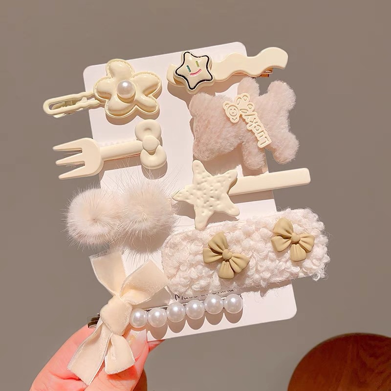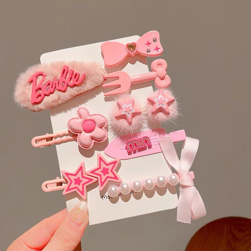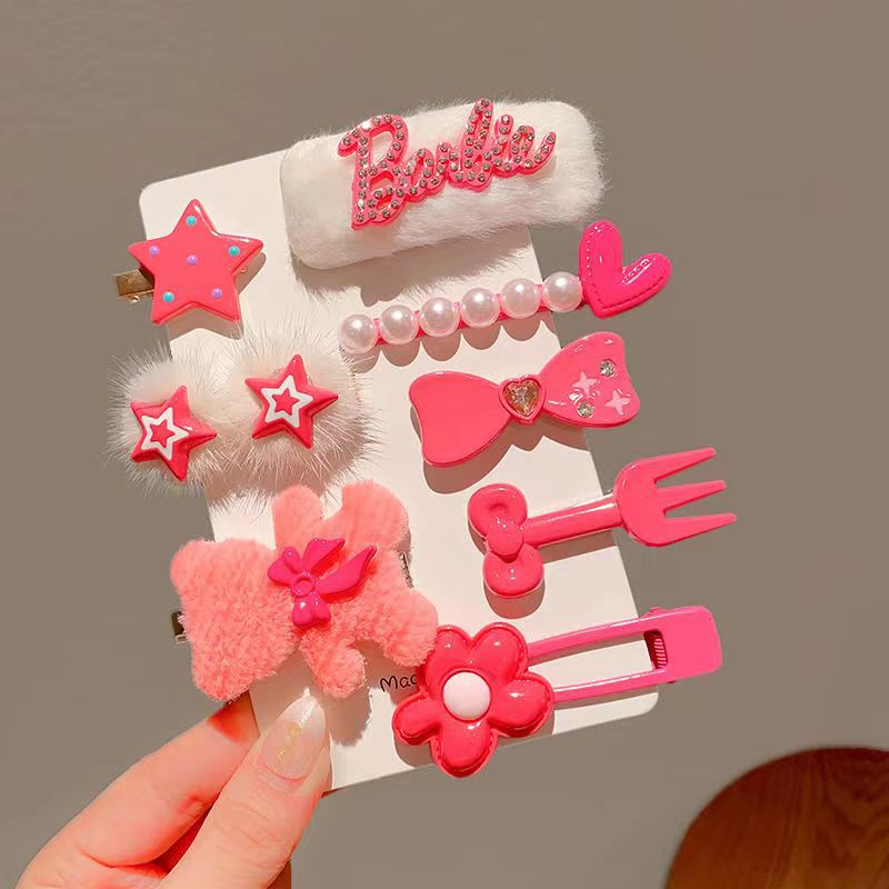 新款粉色2023年毛絨髮夾少女劉海側邊碎發發卡可愛女童夾愛心髮夾