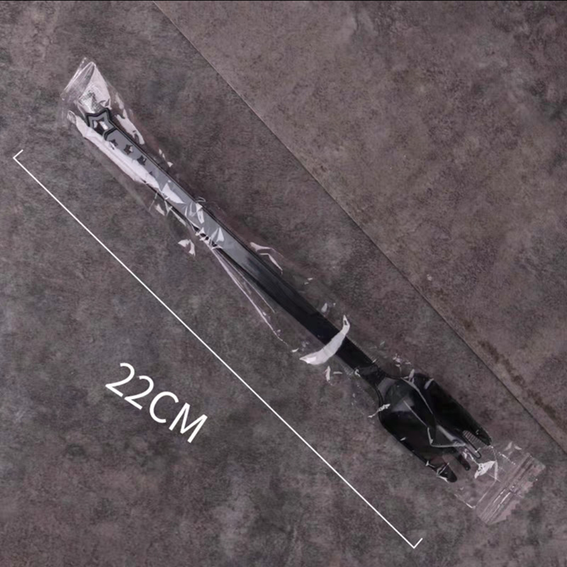 22-Star Black Long Handle Fork-Spoon Set - Individual Packaging
