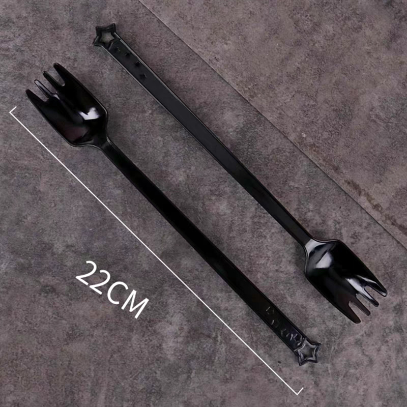 22-Star Black Long Handle Fork and Spoon