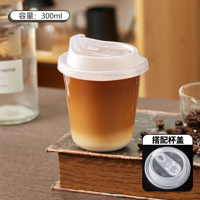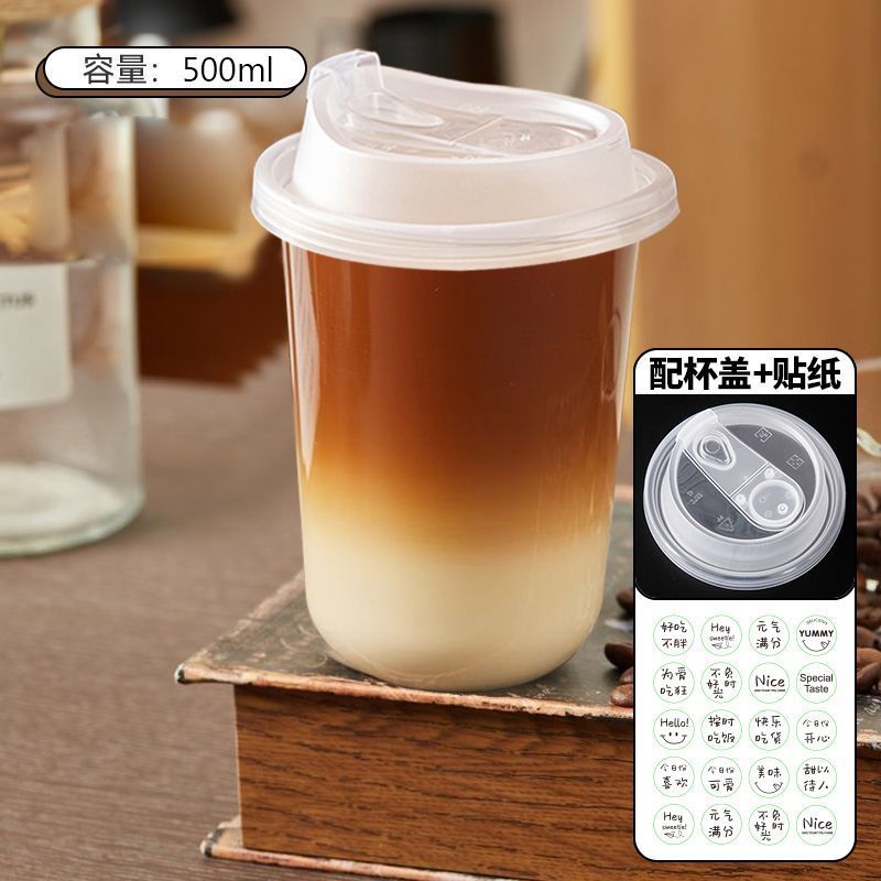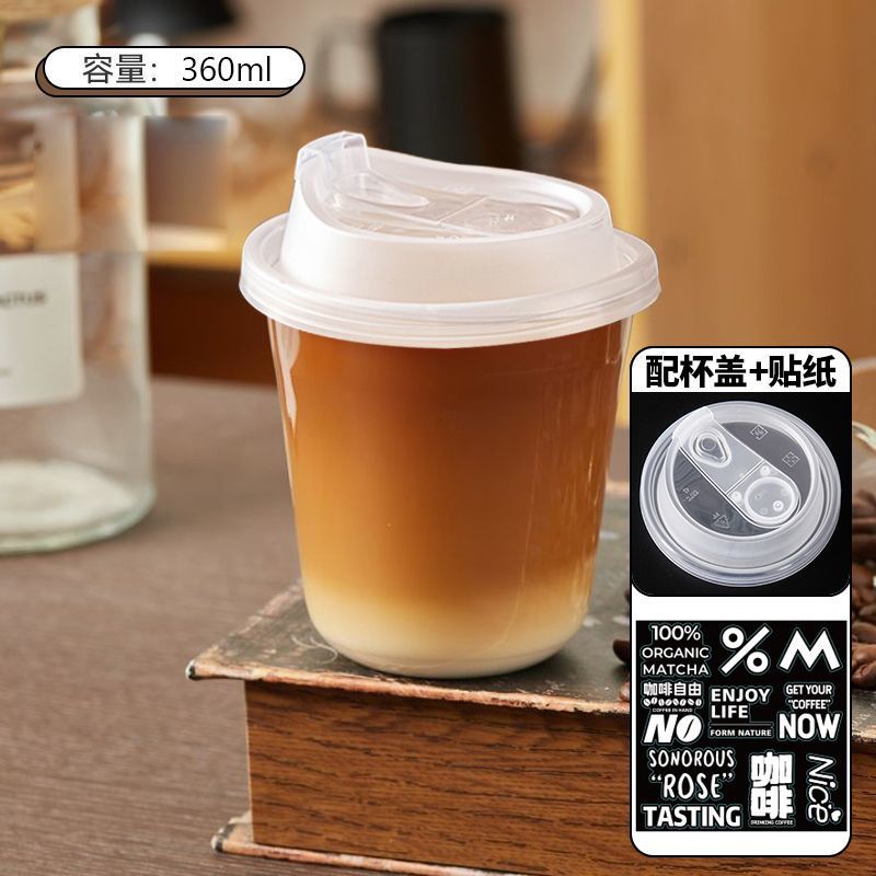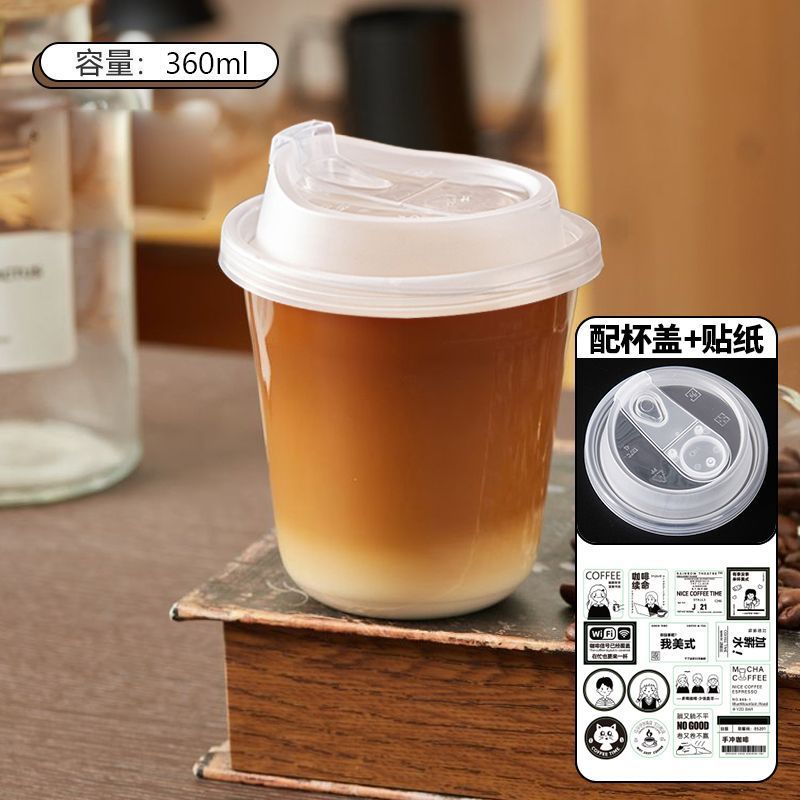 一次性透明帶蓋自製咖啡杯飲料打包杯咖啡杯帶蓋奶茶杯冷飲杯加厚