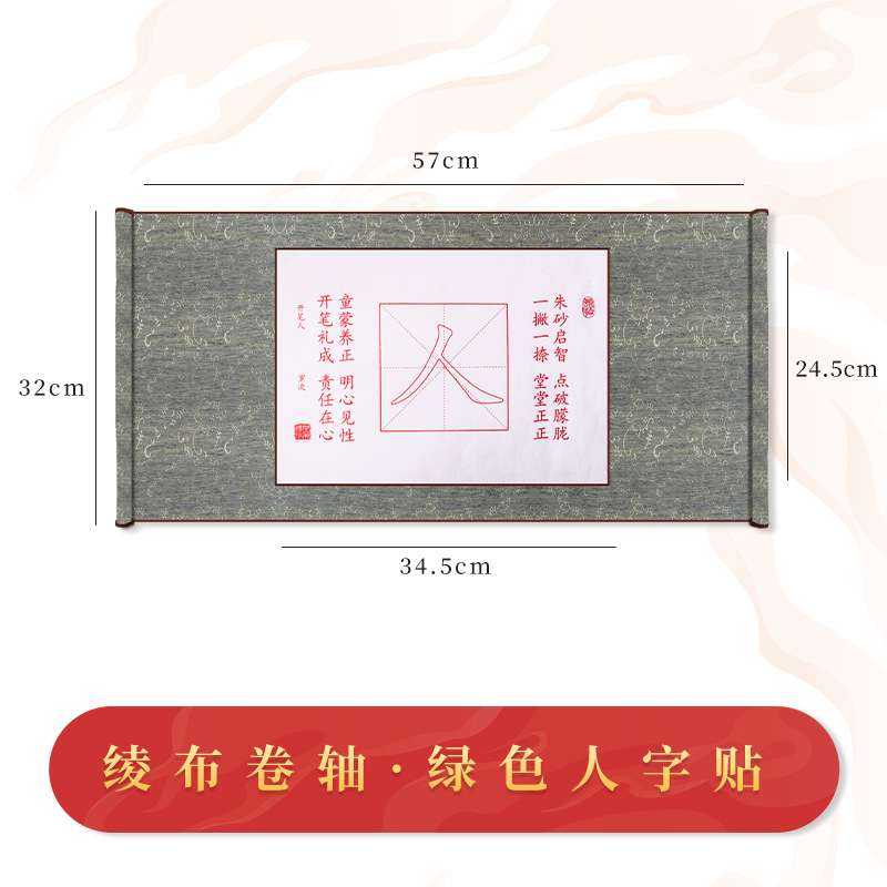 規格:綠色綾布捲軸+筆墨碟