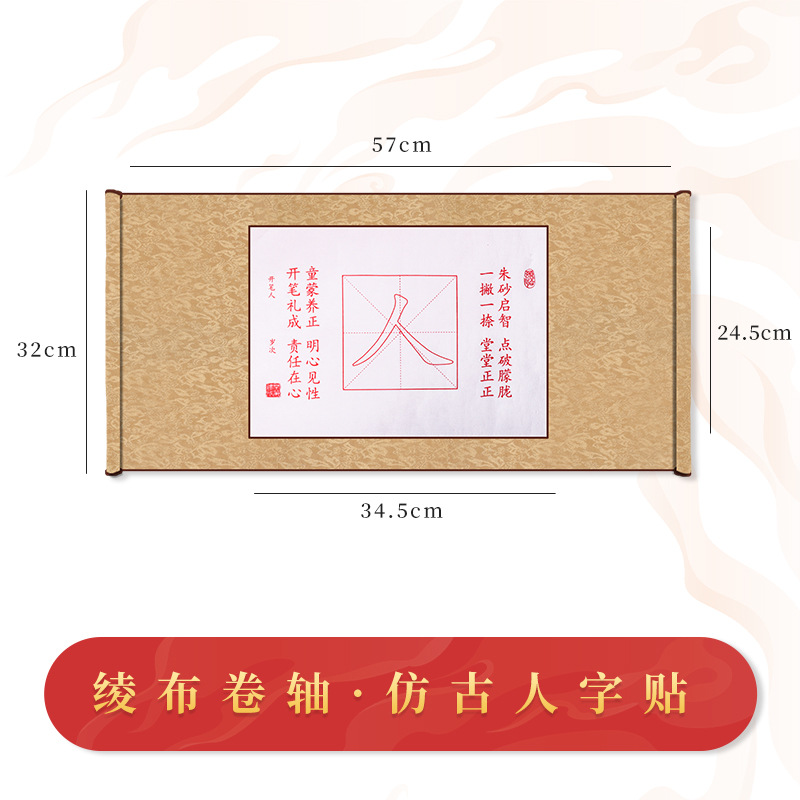 規格:仿古綾布捲軸+筆墨碟
