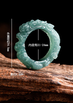 高檔天然A貨藍水翡翠龍王戒指立體雕冰種玉石玉指環龍扳指男戒