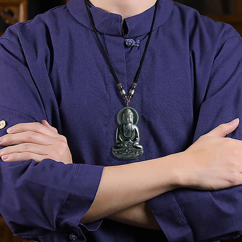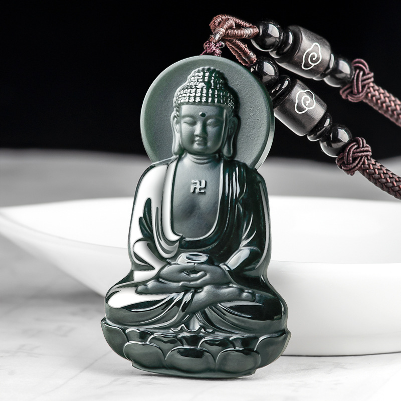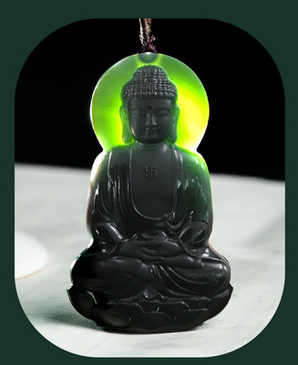 Natural Old Material and Hetian Jade Mokuzuryu Amitabha Pendant Zodiac Dog-Pig Guardian Deity Zodiac Sign Buddha Unisex Pendant